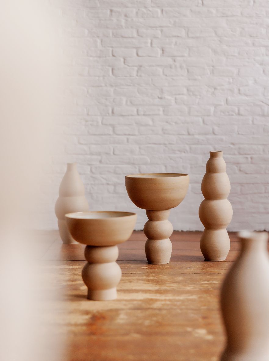 ‘Breathe’ is a collection of handmade vases & pedestal bowls that radiate simplicity and calm. Each piece has an organic shape and soft contours, capturing the rhythm of breath in clay. The natural, matte finish reveals the raw beauty of the clay itself. Four types of stoneware are used, ranging from deep dark to off-white, creating a subtle play of color.